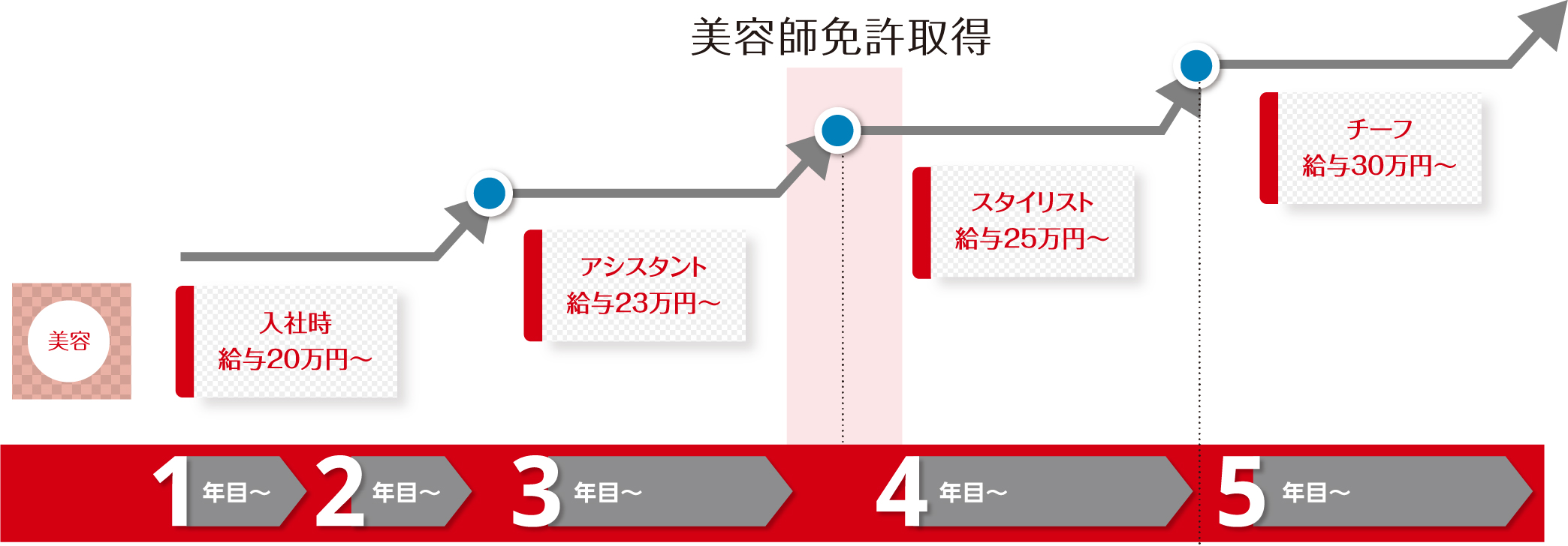 | 給 与 | チーフ:300,000円以上 スタイリスト:250,000円以上 アシスタント:230,000円以上 ※売上に応じて歩合が付く場合あり ※経験・能力を考慮します |