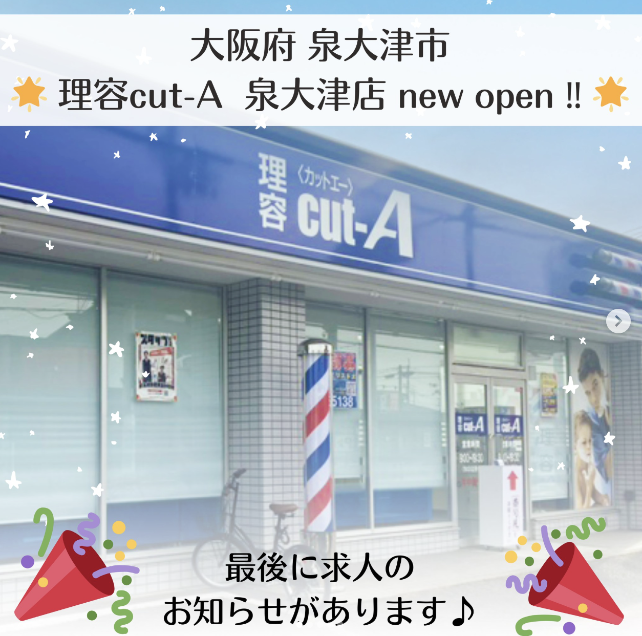 泉大津市北豊中町に【理容cut-A泉大津店】 がオープン!!