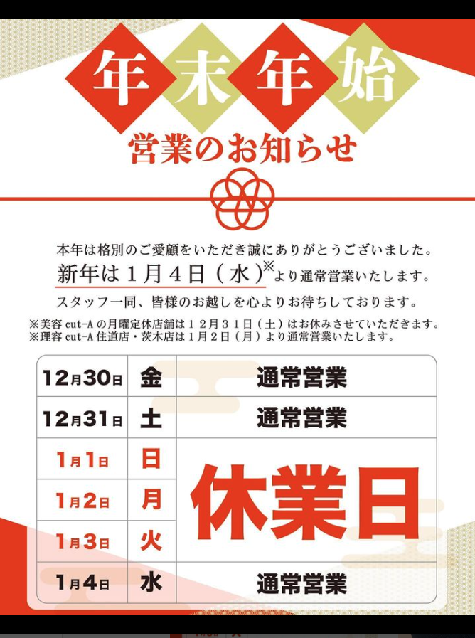 年末年始営業のお知らせ